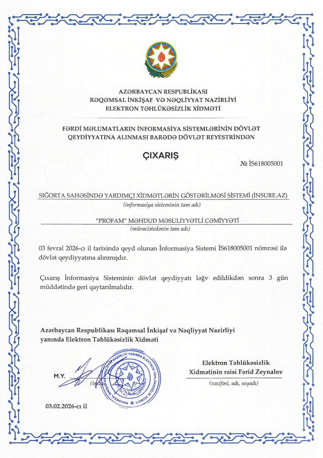 www.insure.az Profam şirkəti tərəfindən 05.05.2016-cı il tarixində yaradılmış, Azərbaycanın ilk rəqəmsal sığorta platformasıdır.